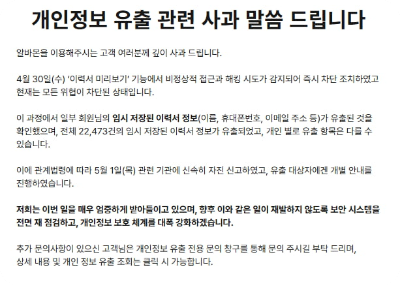 ๐ฅ ์๋ฅด๋ฐ์ดํธ ๊ตฌ์ง์ ๋น์! ์๋ฐ๋ชฌ์์ 2๋ง ๊ฑด ์ด์์ ๊ฐ์ธ์ ๋ณด๊ฐ ์ ์ถ๋์์ต๋๋ค. ๋ด ์ ๋ณด๋ ์์ ํ์ง, ์ด๋ป๊ฒ ๋์ฒํด์ผ ํ ์ง ๊ผญ ํ์ธํ์ธ์!